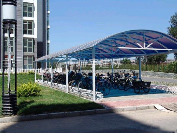 ?車棚的頂部采用遮陽板封頂,同時與車棚整體骨架采用壓條鉚接的方式,在鉚接部位進行防酸堿腐蝕處理,防止日光的直曬。