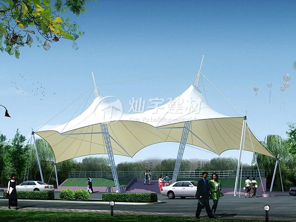 張力膜結構車棚室內空司的采光系數(即室內外外表天然光日照程度之比)一般可高達10%;