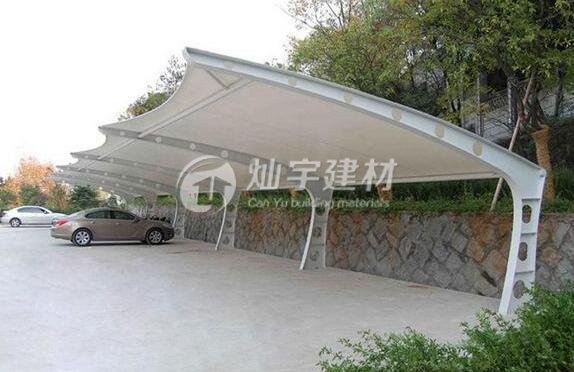 膜結(jié)構(gòu)車棚所用膜材料由基布和涂層兩部分組成。膜結(jié)構(gòu)具有強(qiáng)度低、彈性大、易老化、徐變大、自潔性差,但價格便宜,容易加工制作,色彩豐富,抗折疊性能好等等特點(diǎn)。
